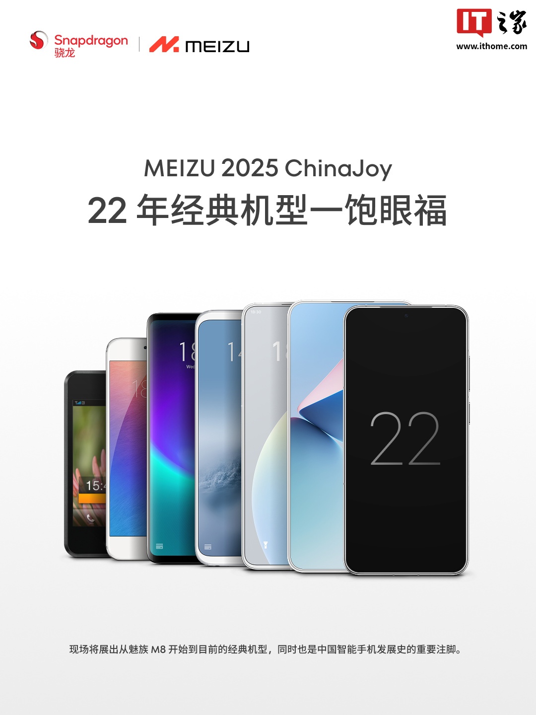 魅族科技官方预热海报显示:“现场将展出从魅族 M8 开始到目前的经典机型,同时也是中国智能手机发展史的重要注脚。”